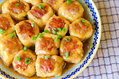 家常小菜~家鄉煎釀豆卜 Tofu Puffs Stuffed with Minced Pork