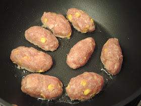 5. 在鑊肉燒熱1湯匙油,放入肉丸,中火煎至兩面金黃色。